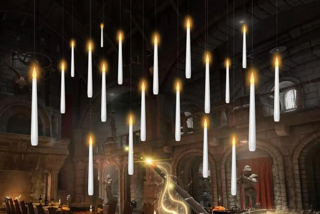 For fans of wizarding worlds, these Kakoya Flameless Floating Candles are a magical addition. The set comes with 20 battery-powered candles that flicker like real flames, suspended on nearly invisible strings to create the illusion of floating lights.