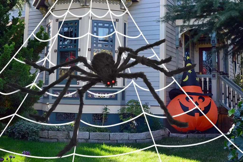 Few decorations capture Halloween’s creepy charm like a giant spider. The Ocato Giant Spider Web set includes a furry, oversized spider with glowing red eyes and a massive 15-foot web that can drape over your entryway or garden.