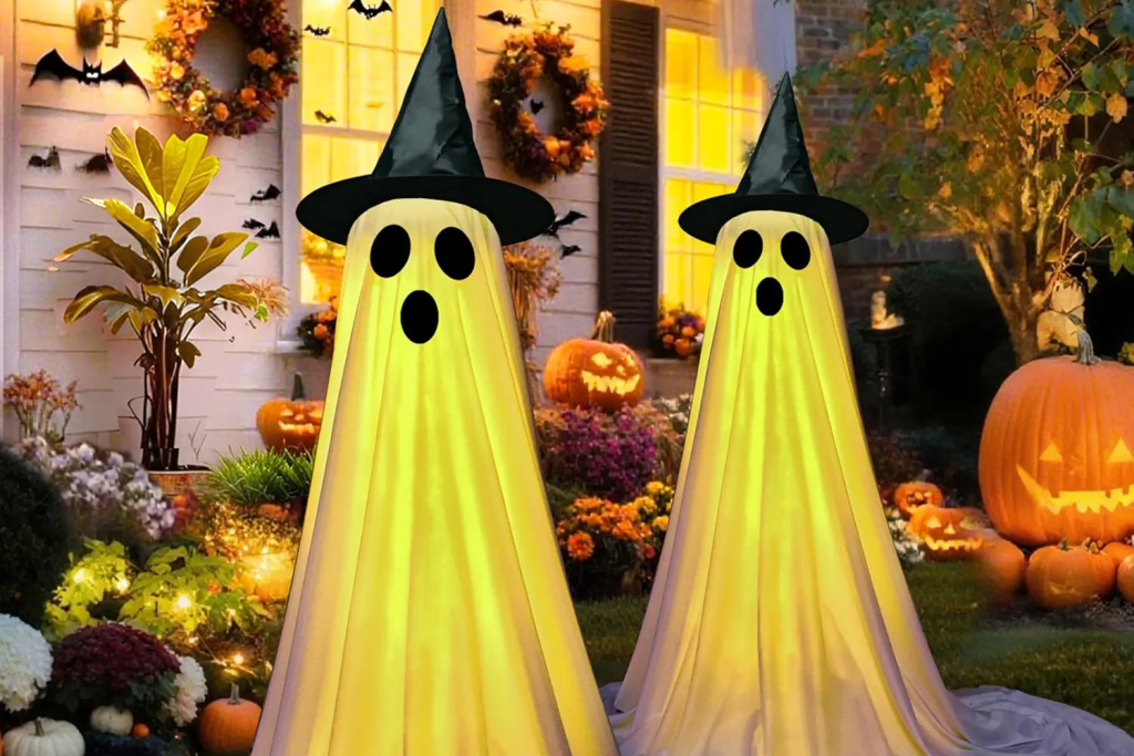 These ghosts are perfect for porches, fences, or tree branches, and their built-in lighting ensures they’re just as effective at night as they are during the day.
