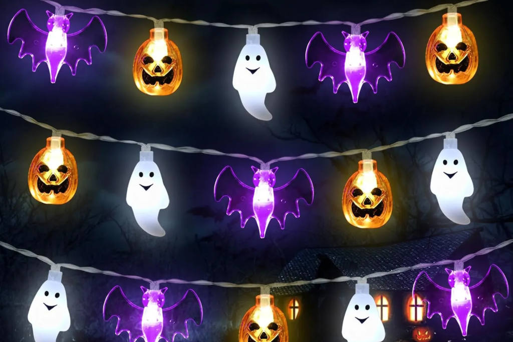 Every Halloween setup needs string lights, and these Zimati Halloween Lights come in spooky orange and purple hues. Drape them over railings, trees, or around doorframes for a warm, festive glow.